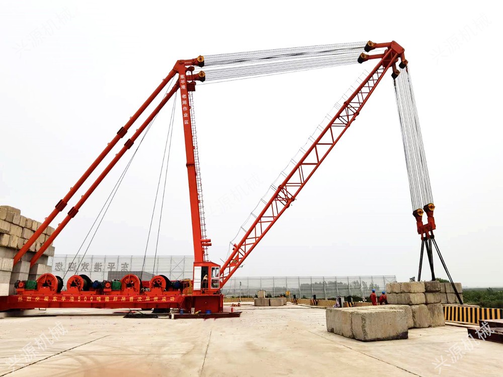 桅桿式起重機(jī)桅桿式起重機(jī),固定安裝的起重機(jī),一般用于港口碼頭桅桿式起重機(jī)又稱為拔桿或把桿,是最簡單的起重設(shè)備。一般用木材或鋼材制作。這類起重機(jī)具有制作簡單、裝拆方便,起重量大,受施工場地限制小的特點。 特別是吊裝大型構(gòu)件而又缺少大型起重機(jī)械時,這類起重設(shè)備更顯它的優(yōu)越性。但這類起重機(jī)需設(shè)較多的纜風(fēng)繩,移動困難。另外,其起重半徑小,靈活性差。因此,桅桿式起重機(jī)一般多用于構(gòu)件較重、吊裝工程比較集中、施工場地狹窄,而又缺乏其它合適的大型起重機(jī)械時。