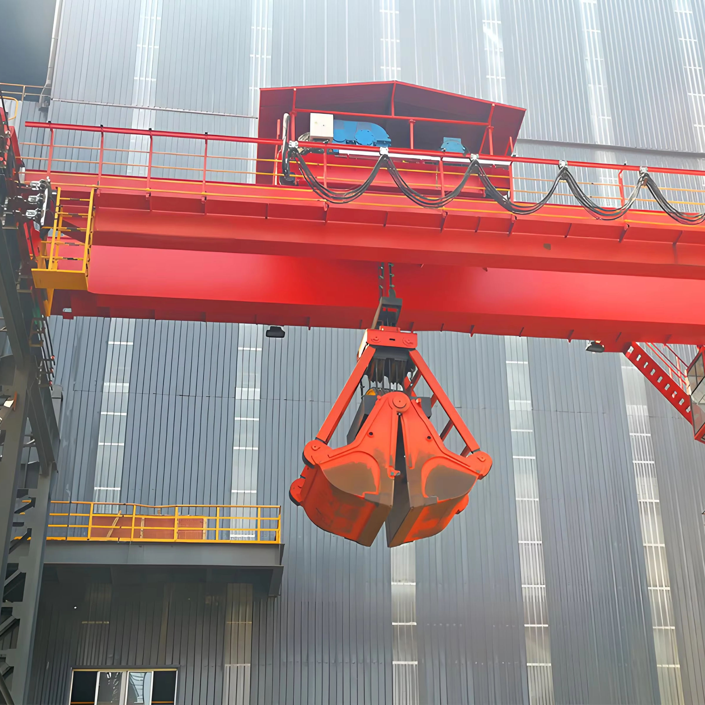 配備雙梁專用 “三合一” 驅(qū)動系統(tǒng),大車、小車運(yùn)行平穩(wěn);抓斗與起升機(jī)構(gòu)聯(lián)動控制,支持駕駛室 / 遙控操作,操作精準(zhǔn)且省力。