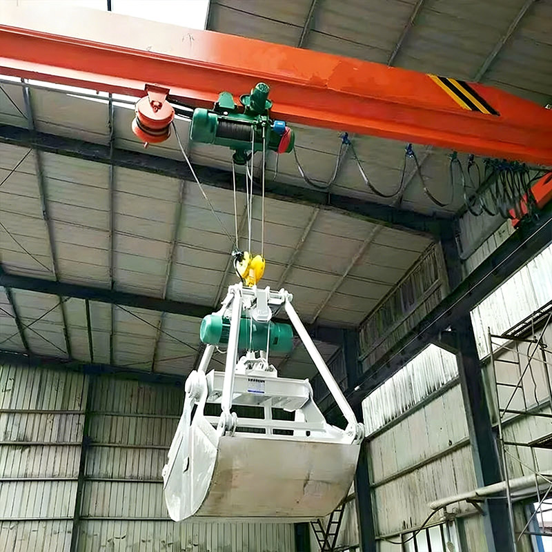 “抓斗”裝置:作為取物裝置,無需人工輔助即可高效抓取和傾倒散料(如煤、礦砂、谷物等),是專門針對散料搬運的“機(jī)械手”。