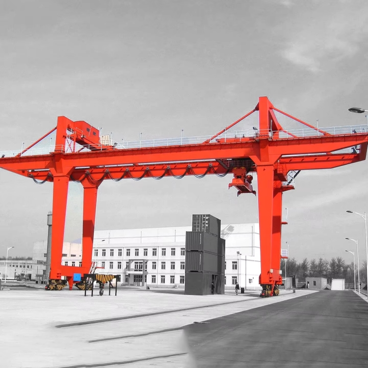 采用雙主梁箱型結(jié)構(gòu)或桁架結(jié)構(gòu),主梁跨度覆蓋 6~8 列集裝箱加 1 條車道(常規(guī)跨度 20~30m),堆垛高度可達 4~7 層集裝箱 + 底盤車高度;門架兩側(cè)設有剛性支腿,保證整機穩(wěn)定性,部分機型配備柔性支腿,適應小范圍地面沉降。
