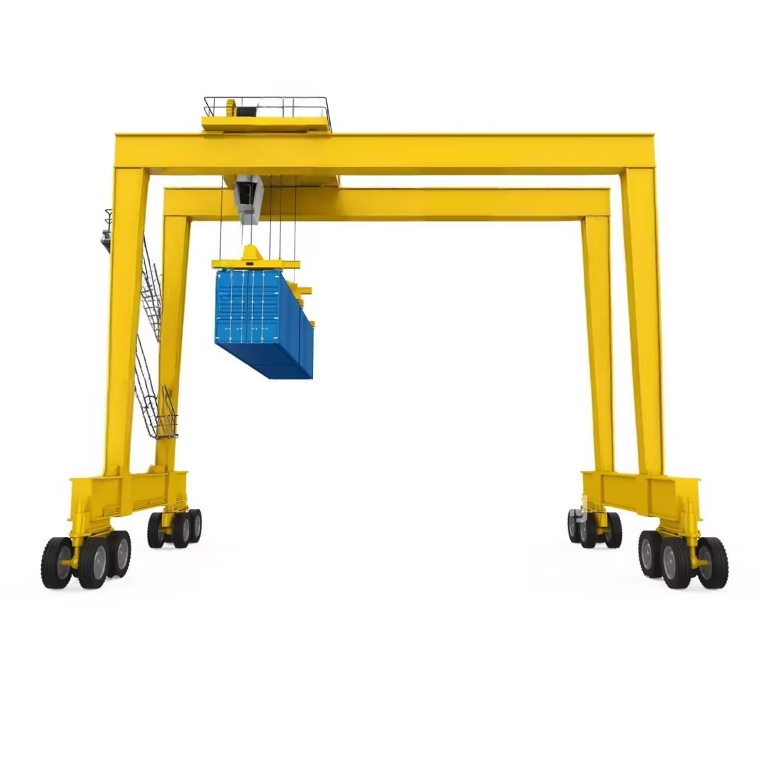 輪胎式集裝箱門式起重機(Rubber-tyred Gantry Crane,簡稱 RTG) 是一種以輪胎為行走機構(gòu)、專為集裝箱堆場作業(yè)設計的重型起重設備,主要用于集裝箱的堆垛、轉(zhuǎn)運、裝卸車作業(yè),廣泛應用于港口集裝箱堆場、鐵路貨運站、內(nèi)陸集裝箱中轉(zhuǎn)站等場景,核心優(yōu)勢是機動性強、場地適應性高、無需鋪設軌道,可靈活調(diào)整作業(yè)區(qū)域。