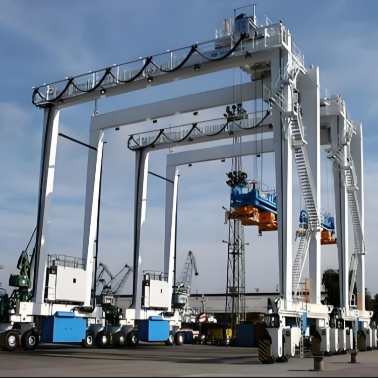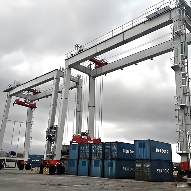 采用雙主梁箱型結(jié)構(gòu)或桁架結(jié)構(gòu),主梁跨度覆蓋 6~8 列集裝箱加 1 條車道(常規(guī)跨度 20~30m),堆垛高度可達 4~7 層集裝箱 + 底盤車高度;門架兩側(cè)設有剛性支腿,保證整機穩(wěn)定性,部分機型配備柔性支腿,適應小范圍地面沉降。